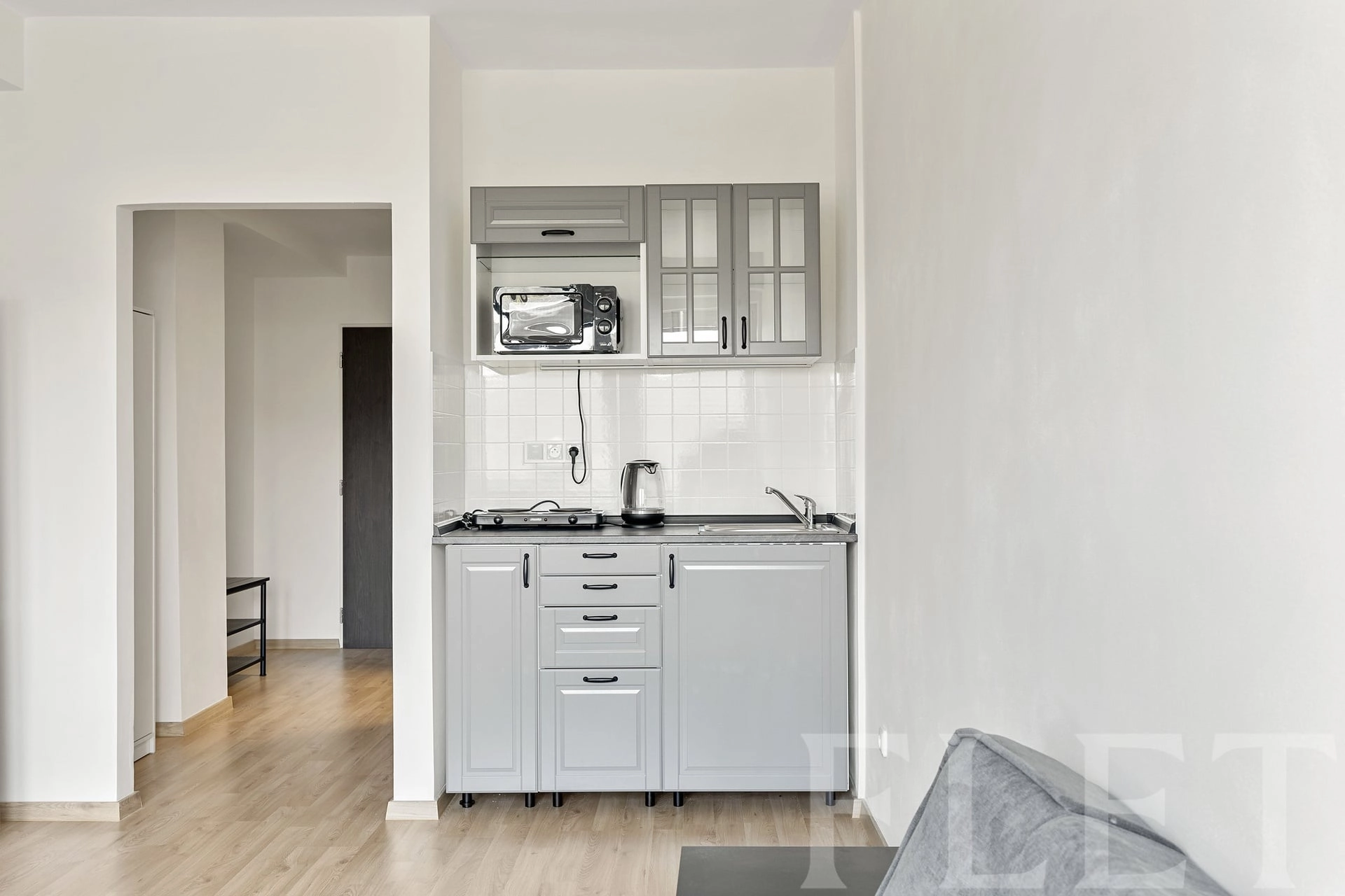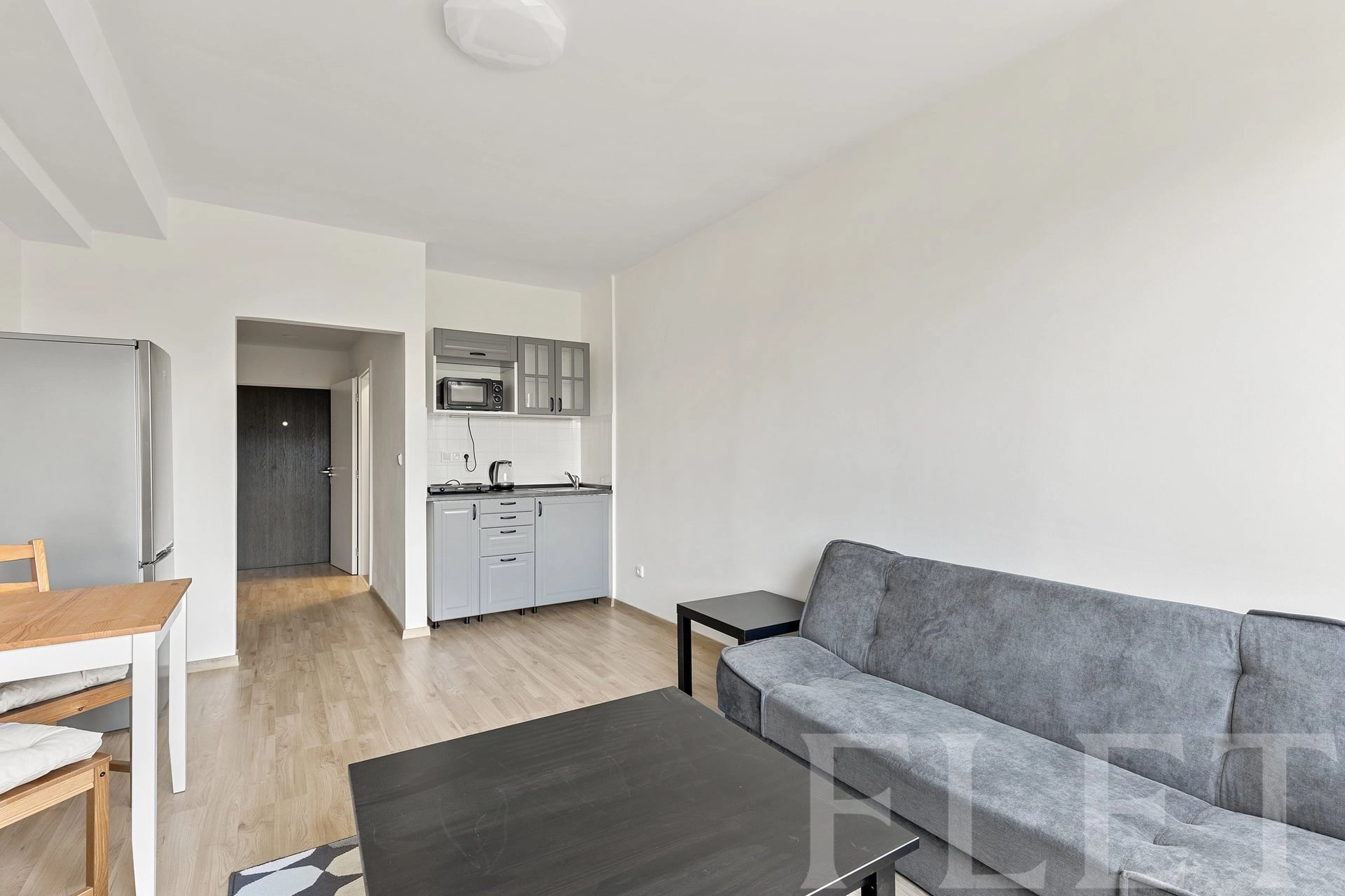 Jednotka je prakticky řešené 1+kk – vstupní chodba s místem na vestavnou skříň, koupelna se sprchovým koutem a WC a světlá obytná místnost s kuchyňským koutem, prostorem pro spaní i posezení. Díky neutrálním barvám a modernímu provedení působí vzdušně a je připravená k okamžitému užívání.