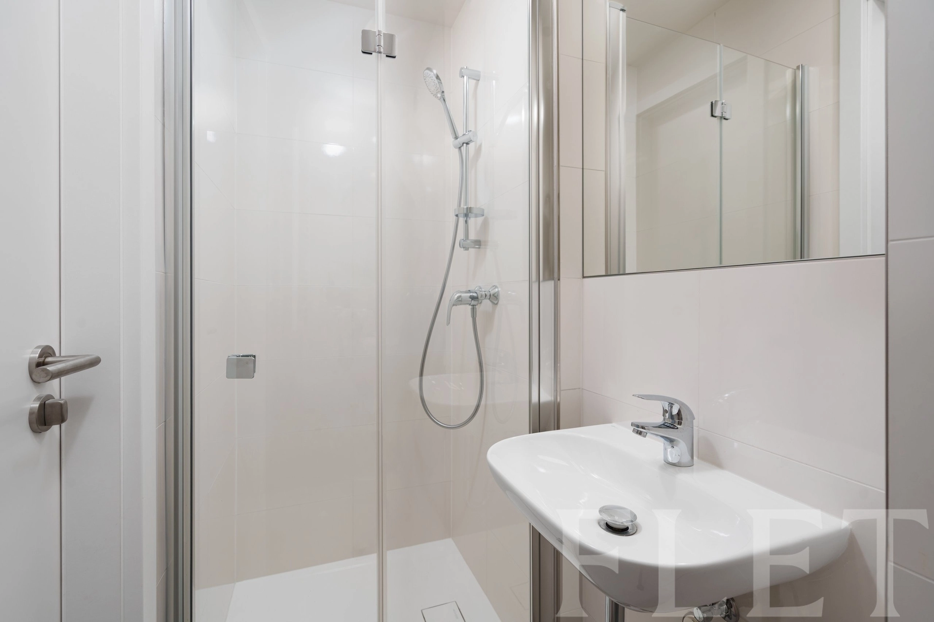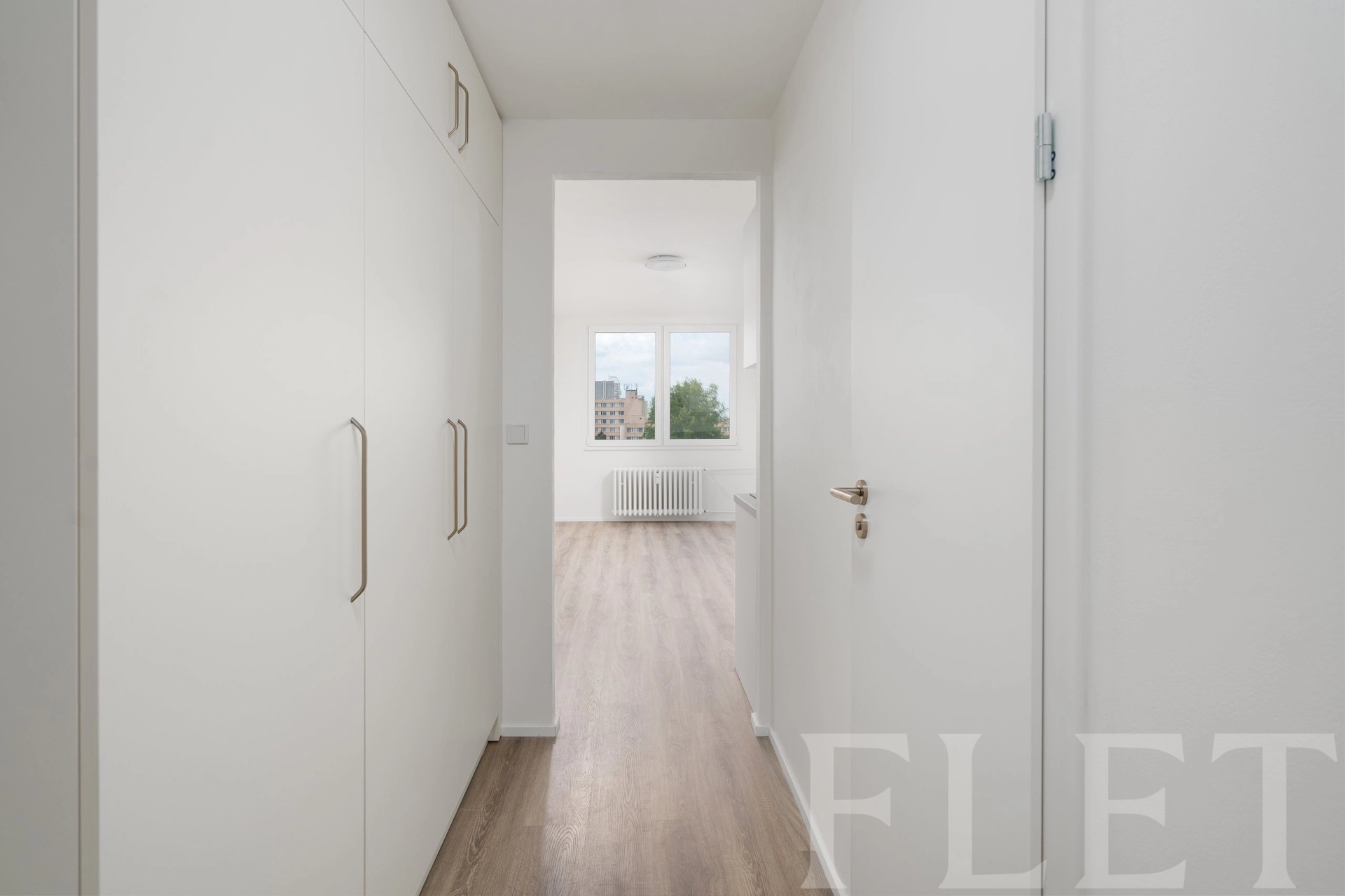 Při vstupu do bytu vás uvítá chodba s velkou vestavěnou šatní skříní, která zajistí dostatek úložného prostoru. Součástí světlého pokoje je moderní kuchyňský kout s lednicí, varnou deskou a zabudovanou mikrovlnnou troubou. V koupelně s toaletou najdete sprchový kout. Součástí pronájmu je také zmíněné parkovací stání v areálu budovy.