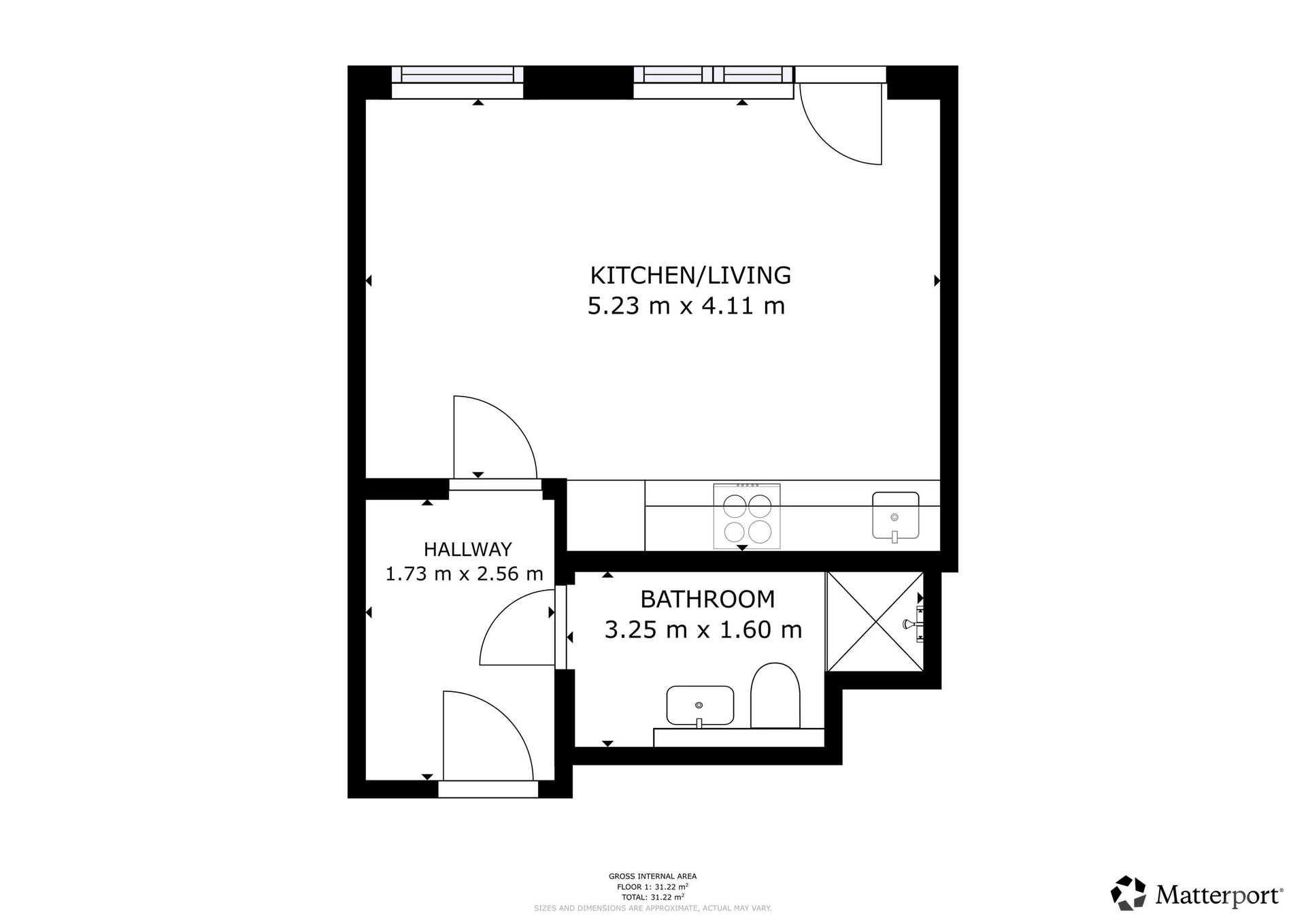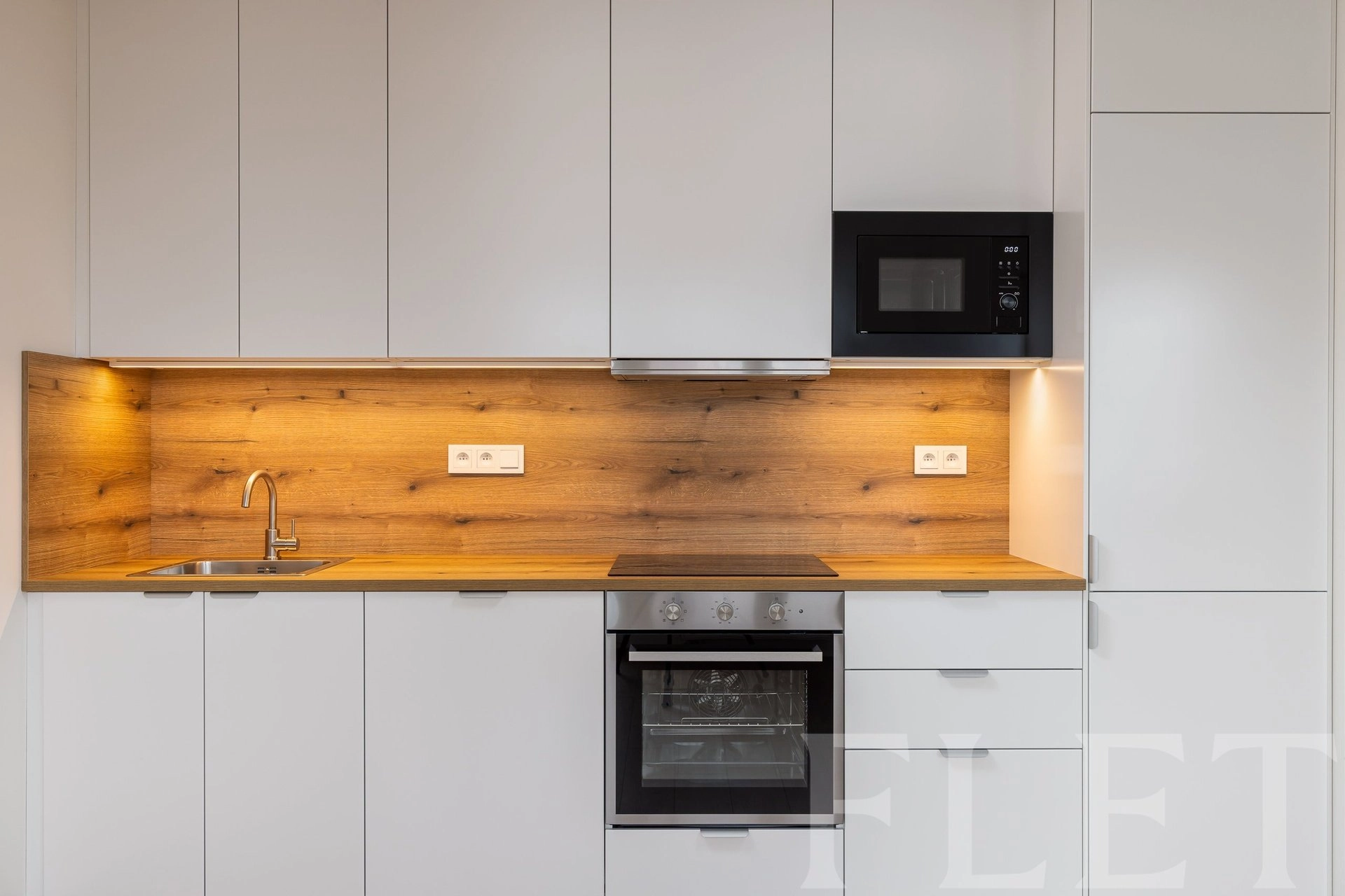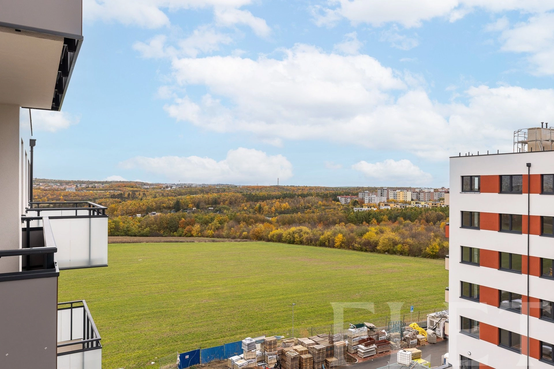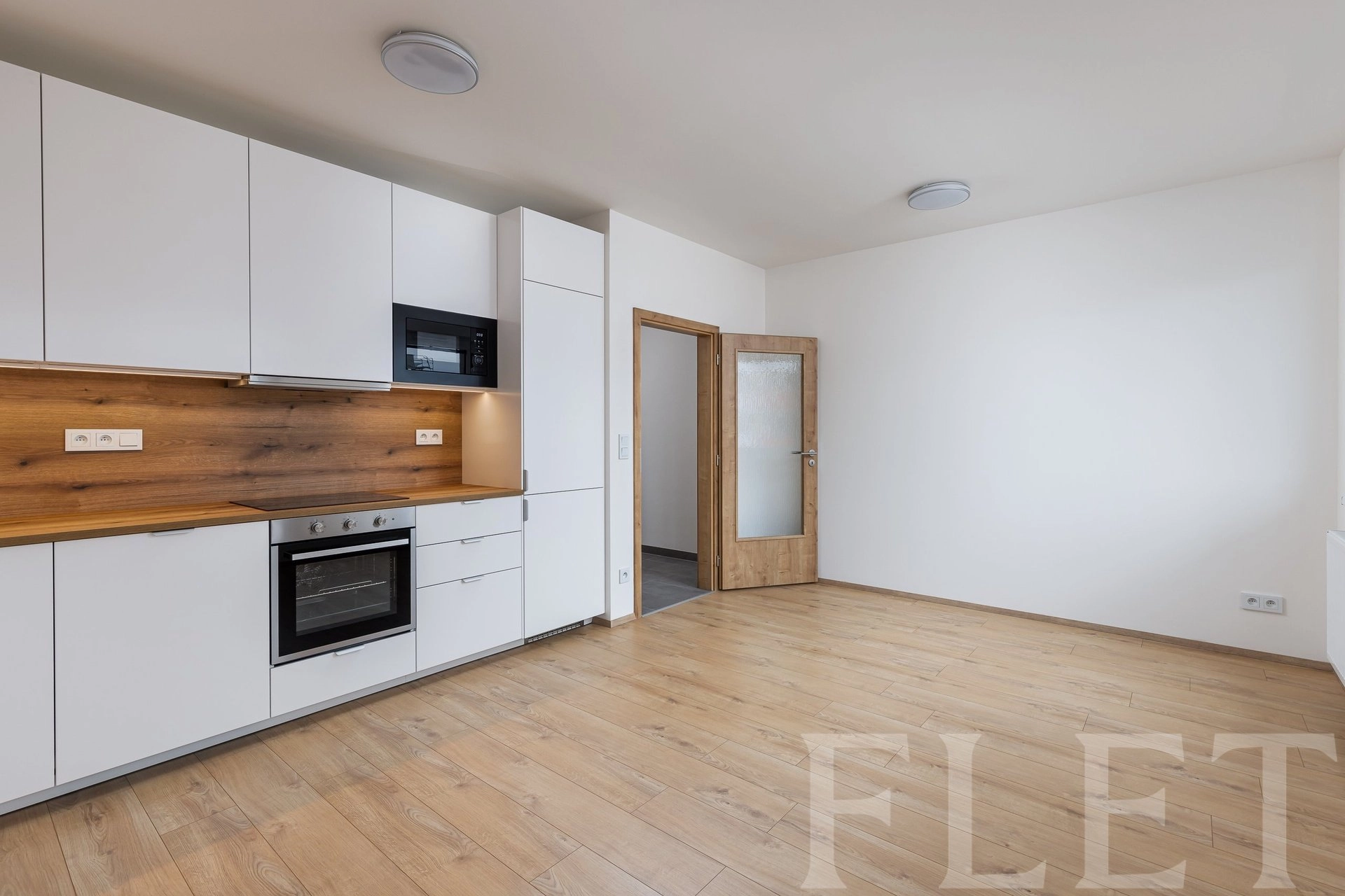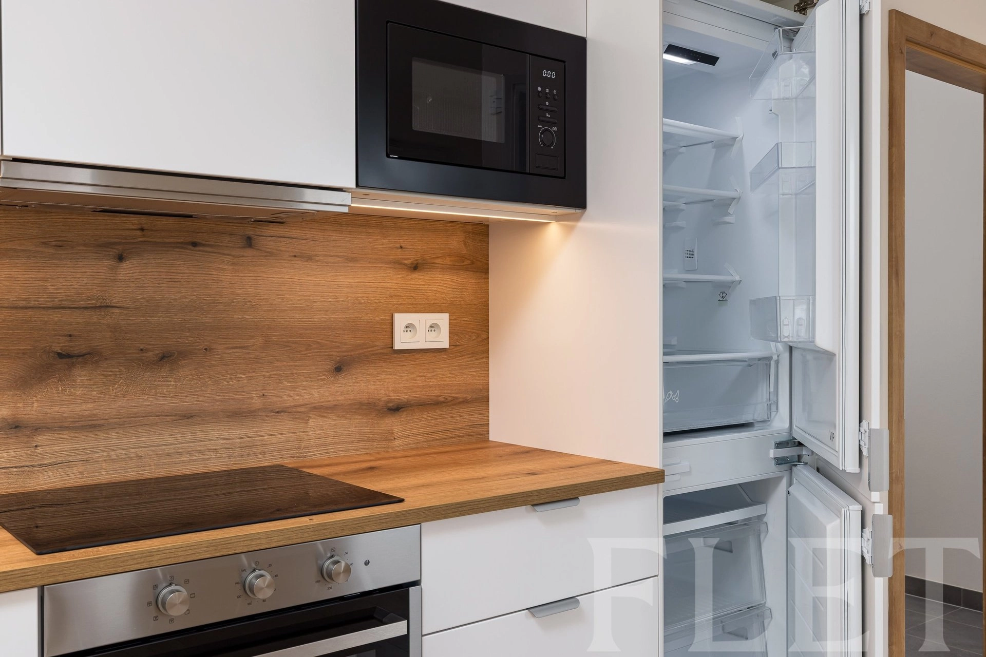Byt zaujme promyšleným dispozičním řešením i elegantním designem. Kuchyňská linka v kombinaci světlého dřeva a decentních tónů působí harmonicky a je plně vybavena vestavěnými spotřebiči včetně myčky. Obytný prostor je díky velkým oknům plný denního světla a plynule navazuje na balkon, který nabízí příjemný výhled na novou rezidenční zástavbu. Koupelna je řešena moderně a prakticky – se sprchovým koutem, toaletou a kvalitní sanitou.