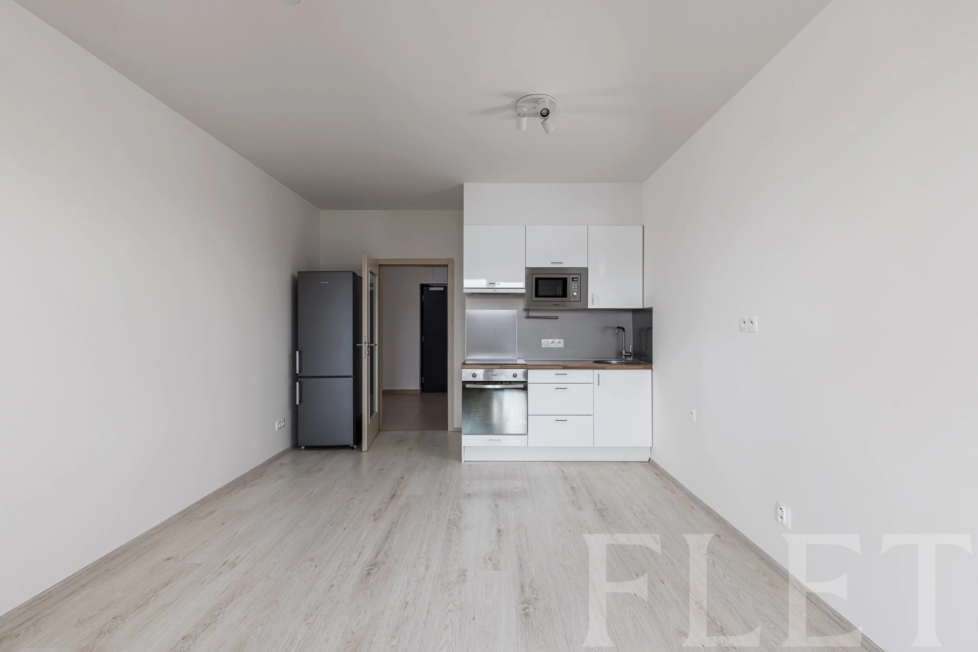 Byt vás uvítá předsíní, ze které vstoupíte do hlavní místnosti, která nabízí prostor pro obývací i jídelní část a je vybavena kuchyňským koutem se základními spotřebiči. Z této místnosti je přístup na balkón, odkud se otevírá příjemný výhled do klidného okolí. Koupelna je vybavena sprchovým koutem, toaletou a pračkou.
