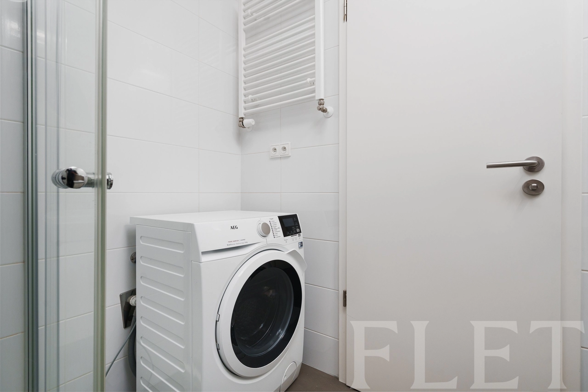 Hlavní obytný prostor je vybaven postelí a kuchyňským koutem se spotřebiči – indukční varnou deskou, troubou, myčkou i lednicí. K dispozici je také pračka. V předsíni se nachází praktická skříň s úložným prostorem. Příjemné vnitřní prostředí zajišťuje rekuperační jednotka, která se stará o pravidelnou výměnu vzduchu.