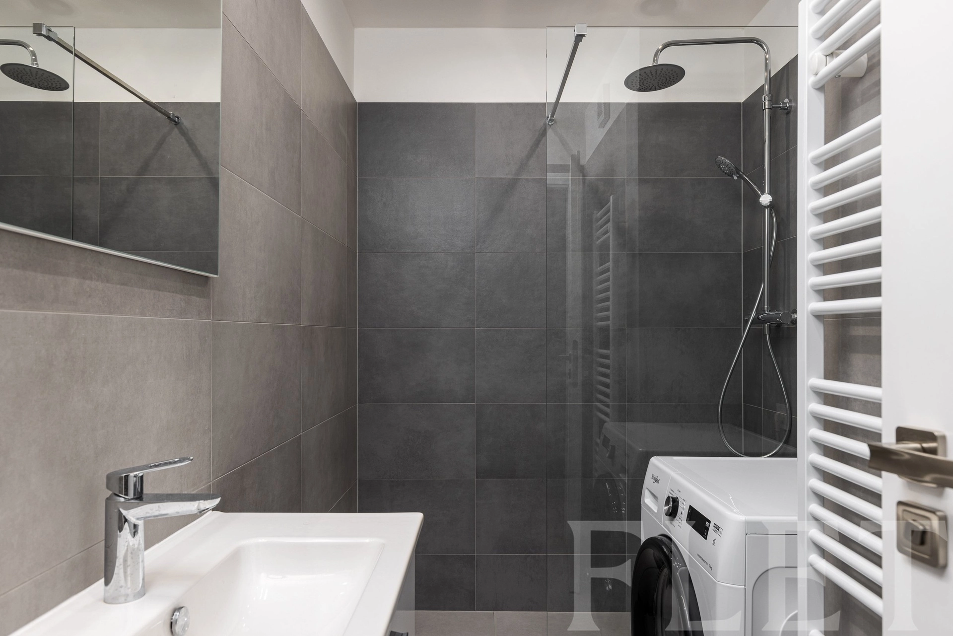 Při vstupu do bytu vás uvítá předsíň, ze které vstoupíte do moderně zrekonstruované koupelny se sprchovým koutem, kde je k dispozici pračka. Toaleta je samostatně. V hlavní místnosti s kompletně zařízenou kuchyní je dostatek prostoru pro jídelní i obývací část. K bytu náleží také útulný balkon orientovaný do klidného vnitrobloku a sklep jako další úložný prostor.