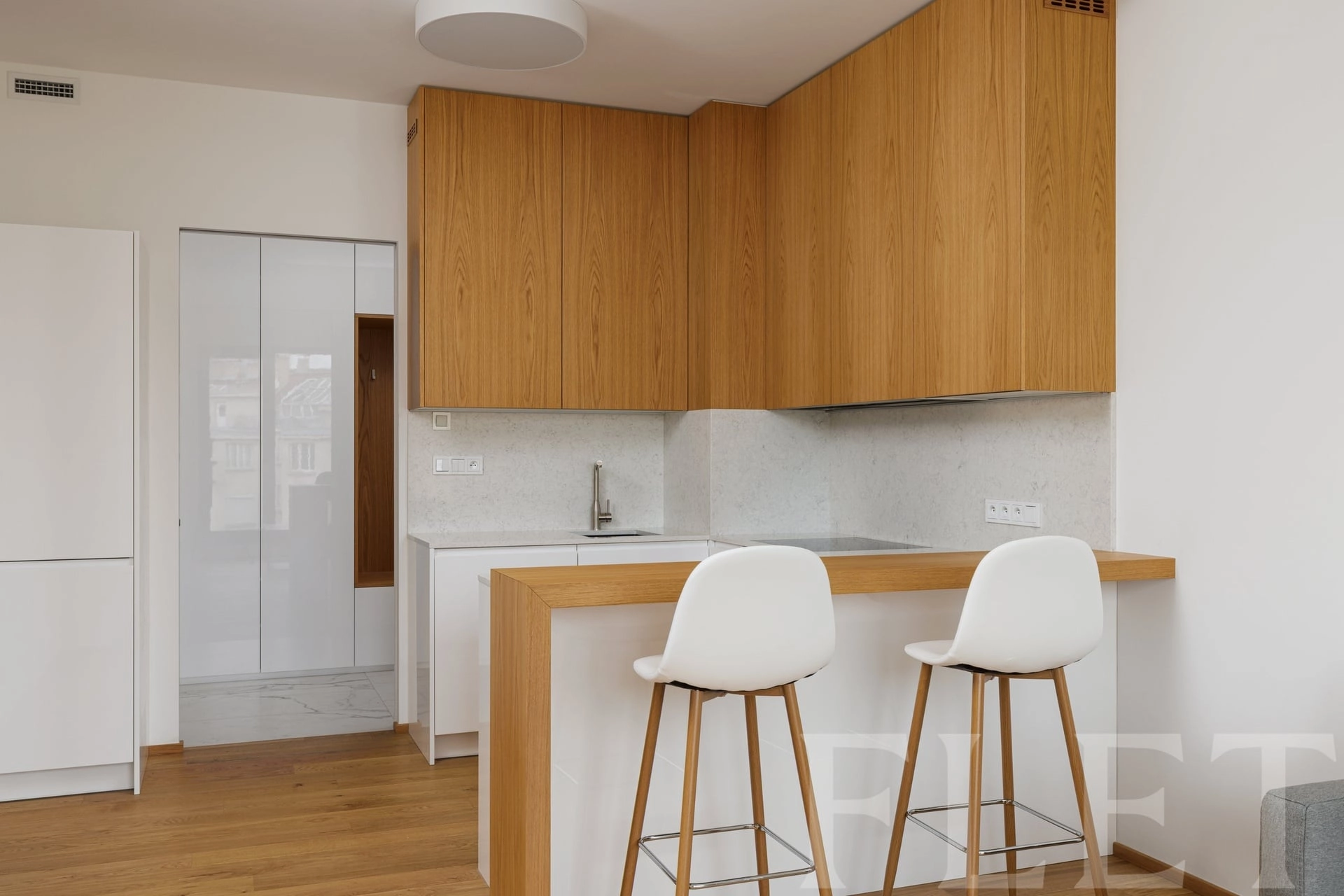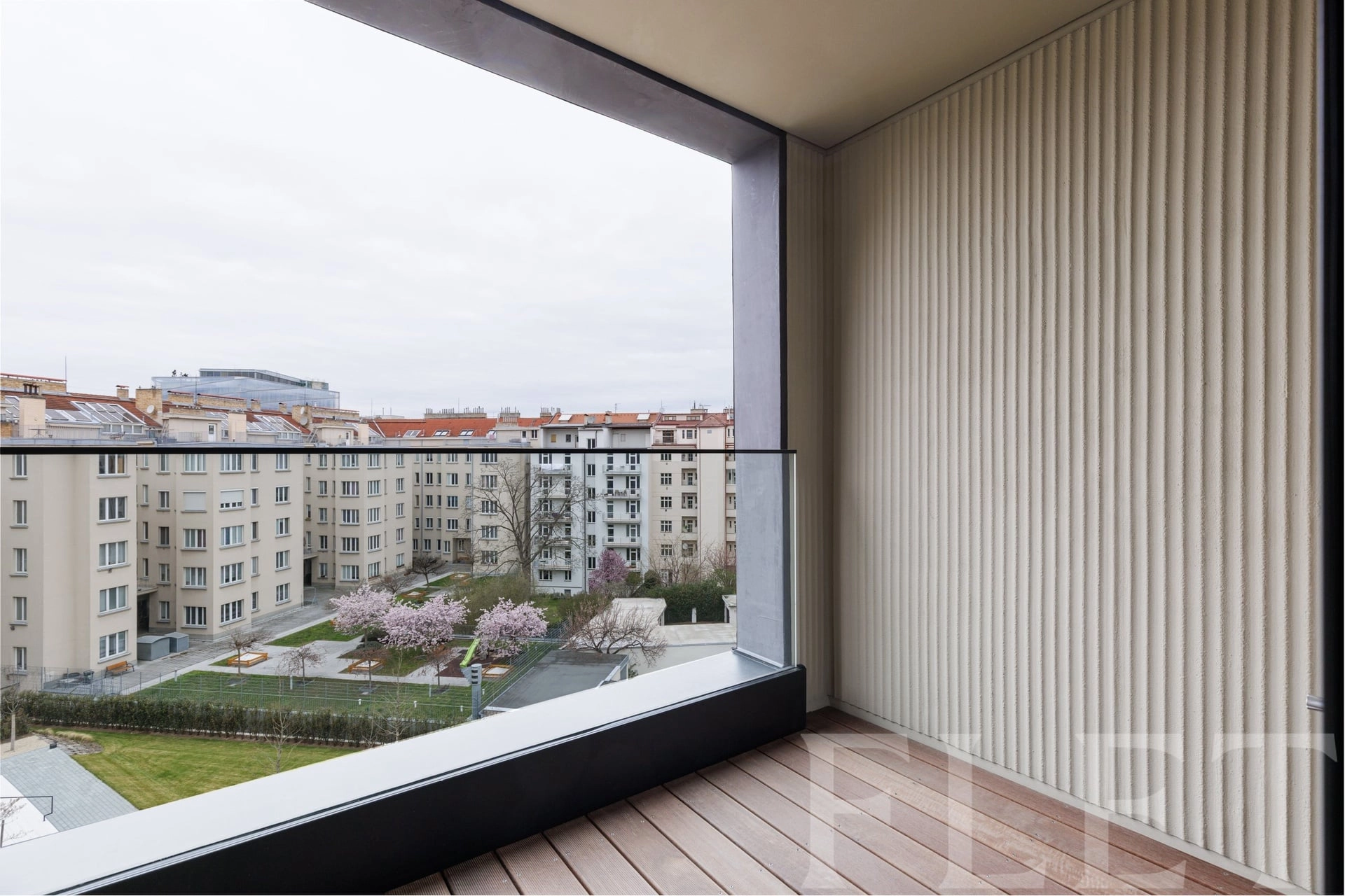 Bydlení zde není jen o prostoru, ale o zážitku. Byt je navržen s důrazem na detail a kvalitní materiály – dřevěné podlahy, francouzská okna s trojskly, klimatizace, rekuperace vzduchu, vestavěný nábytek na míru, elegantní koupelna s pračkou se sušičkou a toaletou s bidetovou sprchou. Vzdušný obývací prostor s plně vybaveným kuchyňským koutem zve k odpočinku i vaření, ložnice poskytuje klid a soukromí. Nechybí lodžie s výhledem do tichého vnitrobloku – ideální místo pro ranní kávu nebo večerní sklenku vína.