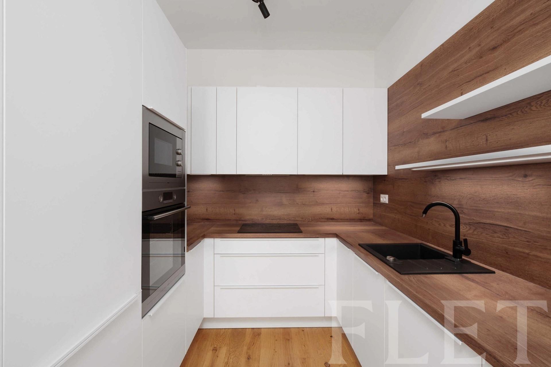 Samotný byt o dispozici 2+kk působí velmi vzdušně a příjemně již při vstupu. Hlavní obytná místnost nabízí dostatek prostoru pro odpočinek i společné chvíle, přičemž kuchyňský kout je elegantně oddělen a vybaven kvalitními spotřebiči – elektrickou a mikrovlnnou troubou, varnou deskou, velkou lednicí s mrazákem a myčkou nádobí. Ložnice pak poskytuje klidné útočiště s výhledem do tiché okolní zástavby. Koupelna je moderní a prostorná, s komfortním sprchovým koutem, toaletou a pračkou. Velkým bonusem je sklep přímo v budově a parkovací stání v podzemní garáži, díky kterému odpadá starost s parkováním. Tento byt představuje ideální kombinaci moderního bydlení, klidu a pohodlí, kterou ocení každý, kdo hledá skutečně příjemné místo k životu.