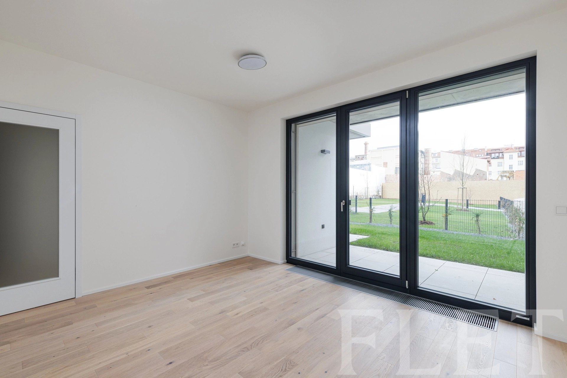 Při vstupu do bytu vás uvítá prostorná předsíň s vestavěnou skříní, ve které je připraven přívod pro pračku. V hlavní místnosti je umístěn kompletně vybavený kuchyňský kout, kde najdete troubu, varnou desku, digestoř, myčku nádobí a lednici s mrazákem. Druhý neprůchozí pokoj si můžete zařídit například jako ložnici. Z obou pokojů se dostanete na vlastní prostornou zahrádku v klidném uzavřeném vnitrobloku zajišťující veškerý komfort a bezpečí. Pro maximální soukromí byly na velkoformátových oknech s izolačními trojskly instalovány venkovní žaluzie. V moderní koupelně se sprchovým koutem je toaleta. K bytu náleží také sklep a jedno garážové stání.