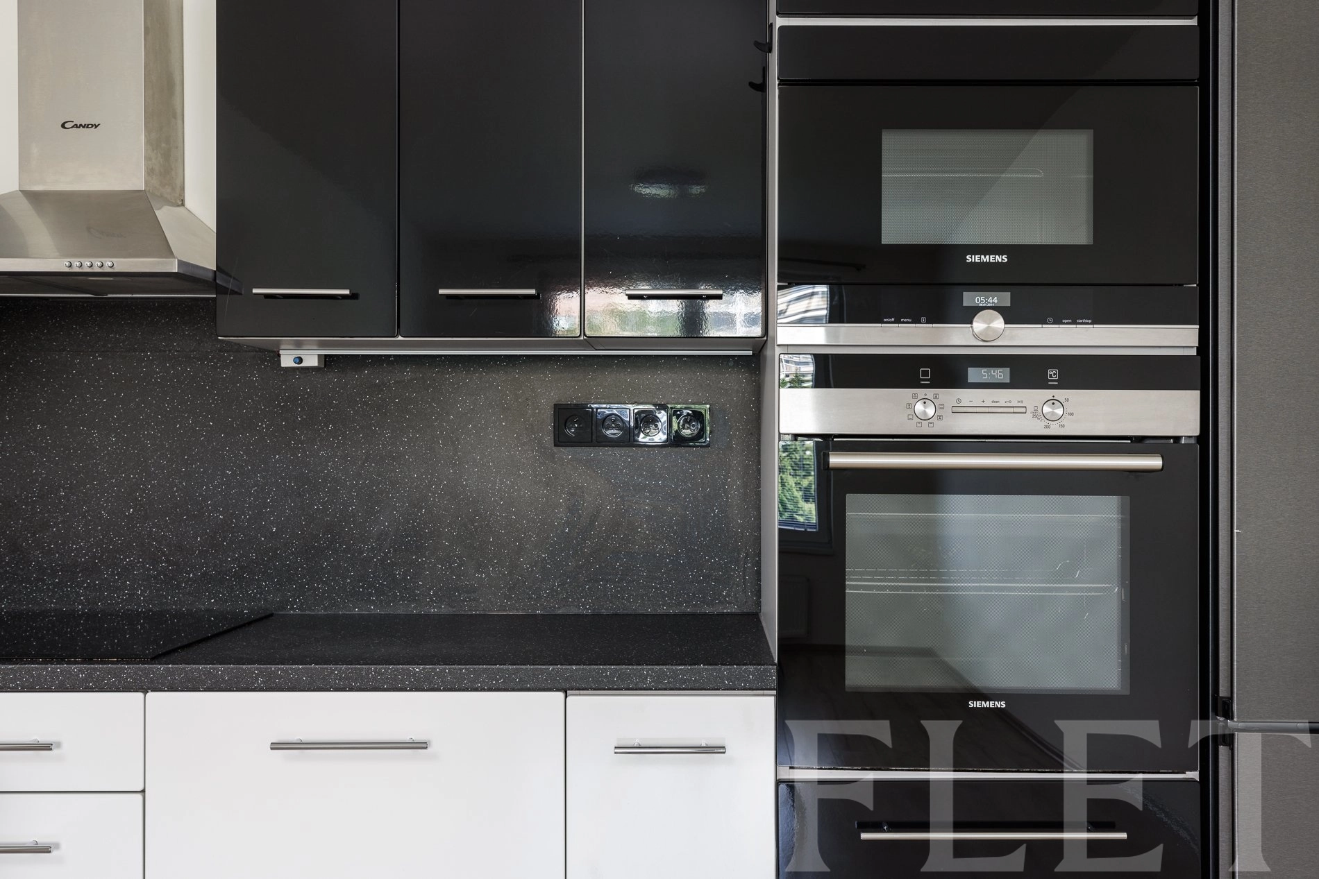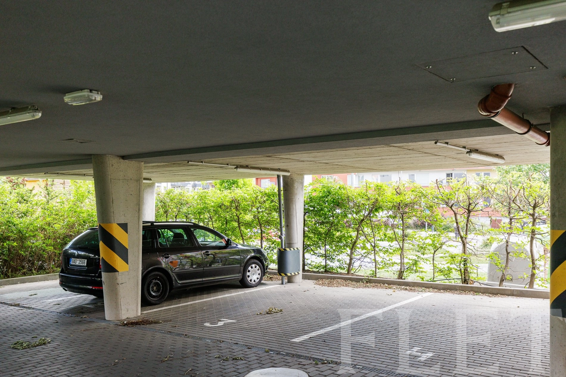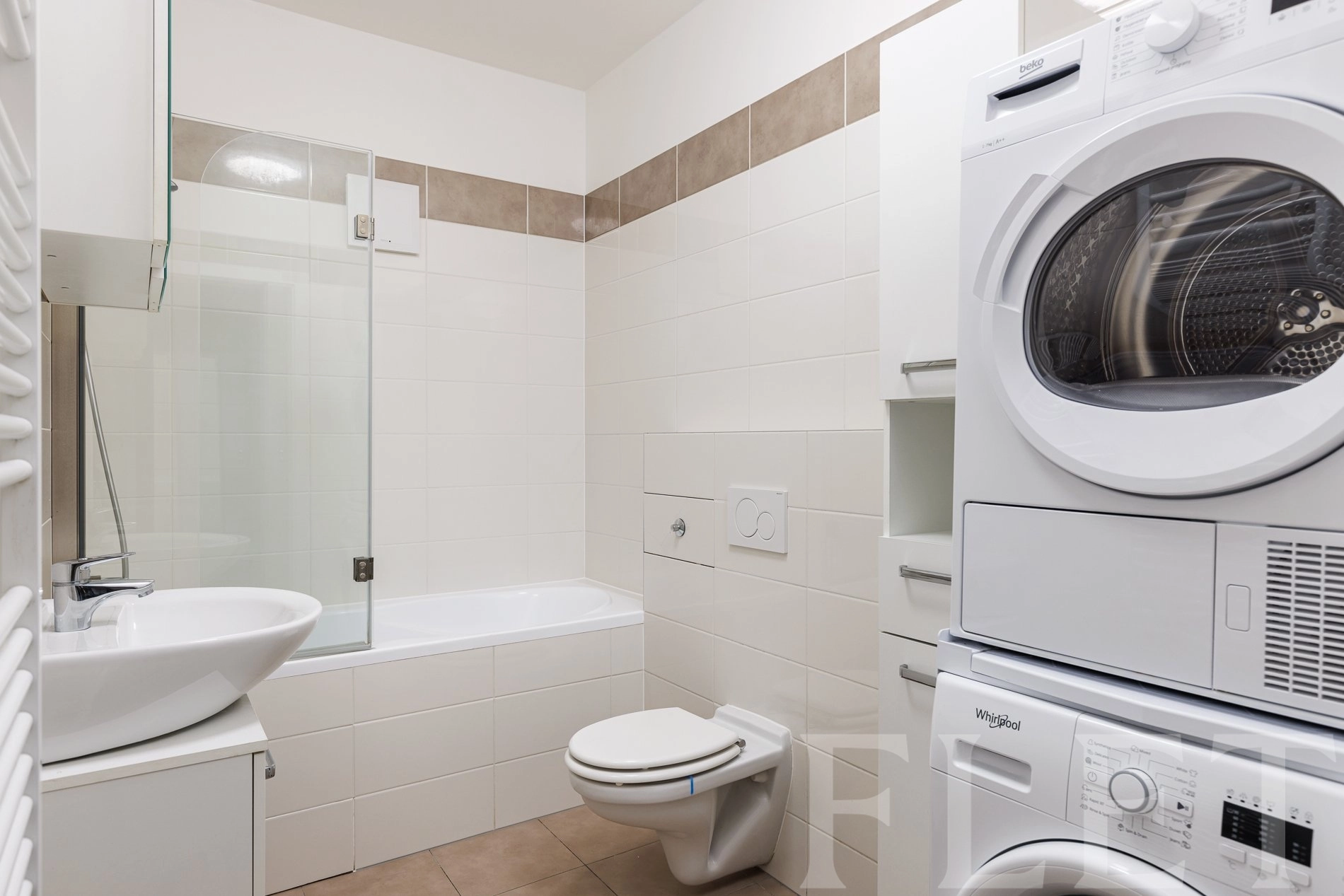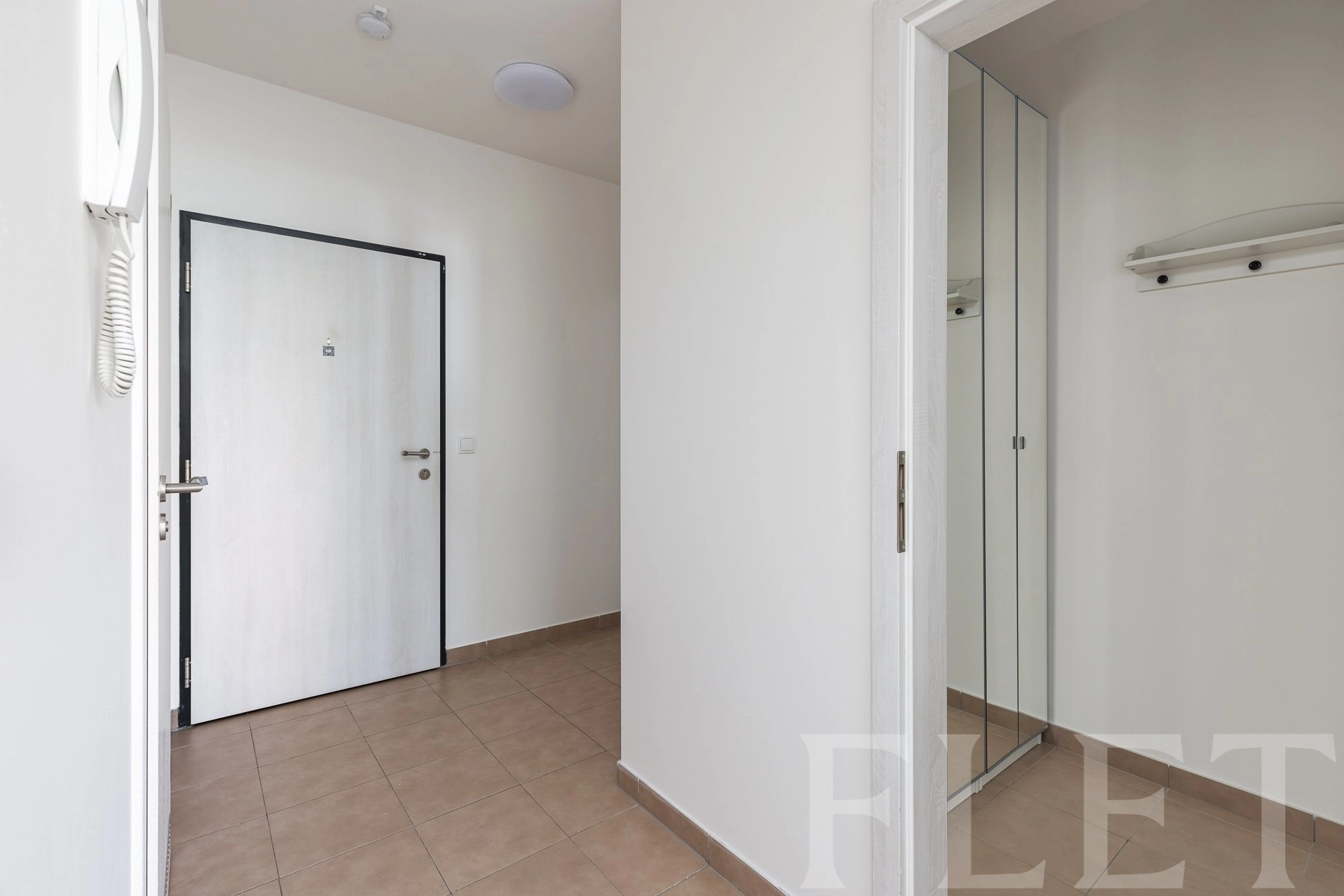 Při vstupu do bytu vás uvítá prostorná chodba, odkud se dostanete do všech místností. Dominantou hlavního pokoje je moderní kuchyňský kout v elegantním černo-bílém provedení se všemi nezbytnými spotřebiči vč. myčky a vestavěné mikrovlnky. Zbytek pokoje nabízí dostatek prostoru pro obývací i jídelní část. Z ložnice projdete do zasklené lodžie s výhledem do zeleně a okolní zástavby. Ve světlé koupelně s vanou a toaletou je k dispozici nejen pračka, ale také sušička na prádlo. Dvě šatní skříně v praktické komoře a jedna na chodbě zajistí dostatek úložných prostor pro vaše věci. Součástí pronájmu je také již zmíněné garážové stání.